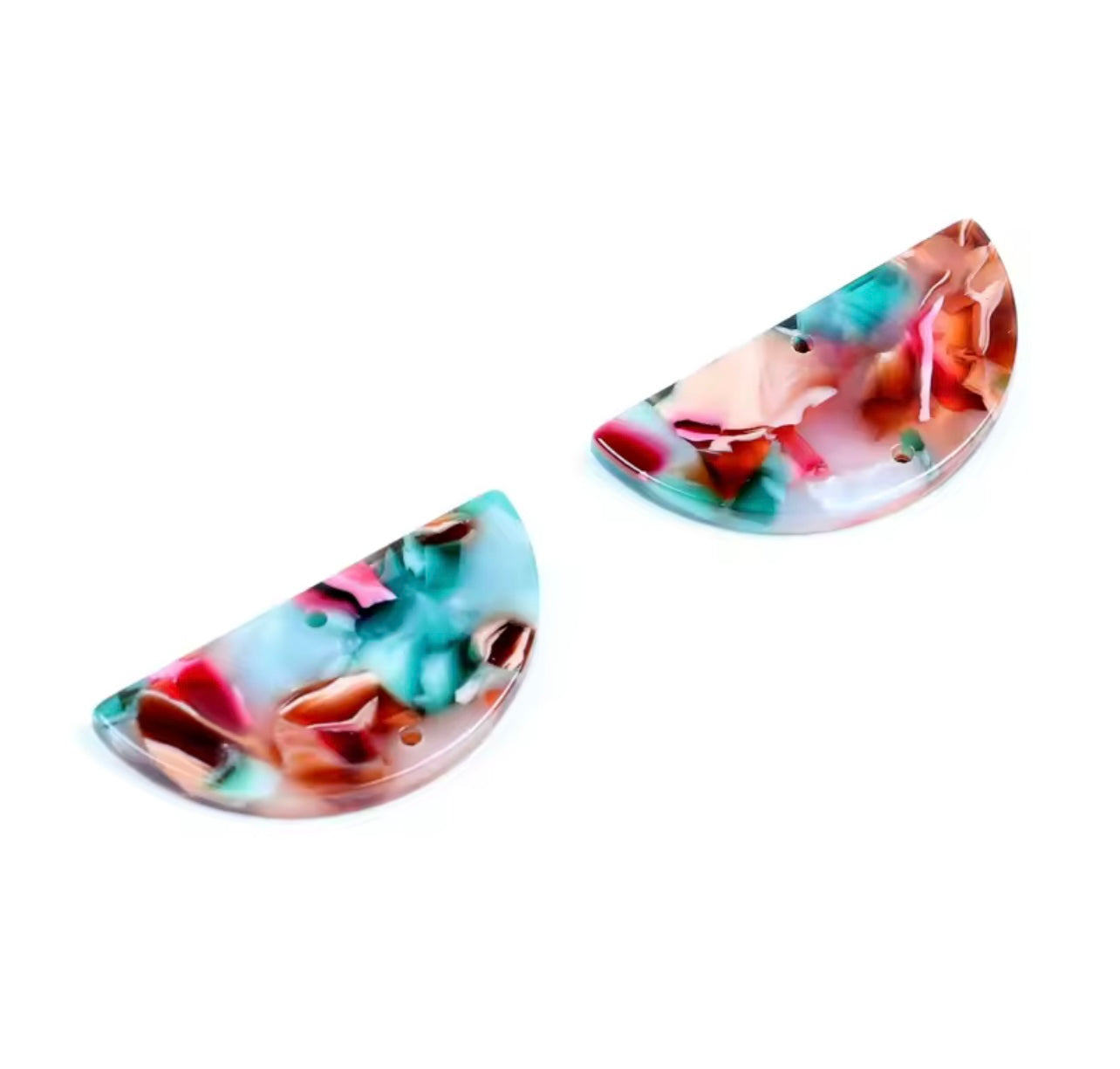 2 pieces Tortoise Shell Earring Charms, Acetate Acrylic Beads, Half Round Shaped Pendant, Semicircle Connectors 2Hole,Earring Parts- Designed with durable and stylish acetate acrylic beads, these two tortoise shell shaped earring charms are the perfect addition to your earring collection. These pieces are crafted with precision to ensure a perfect fit, making for an easy and beautiful addition to any outfit.