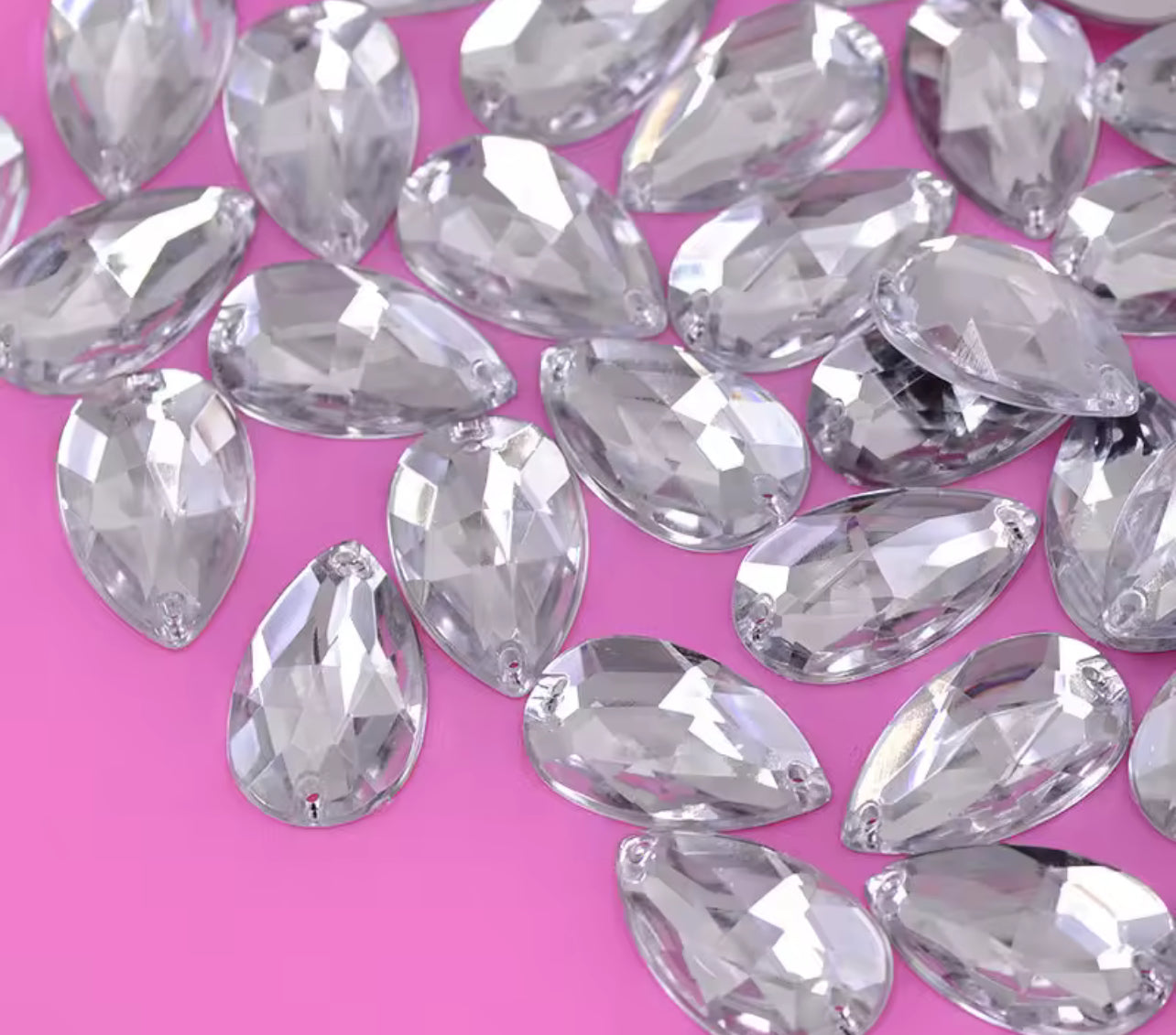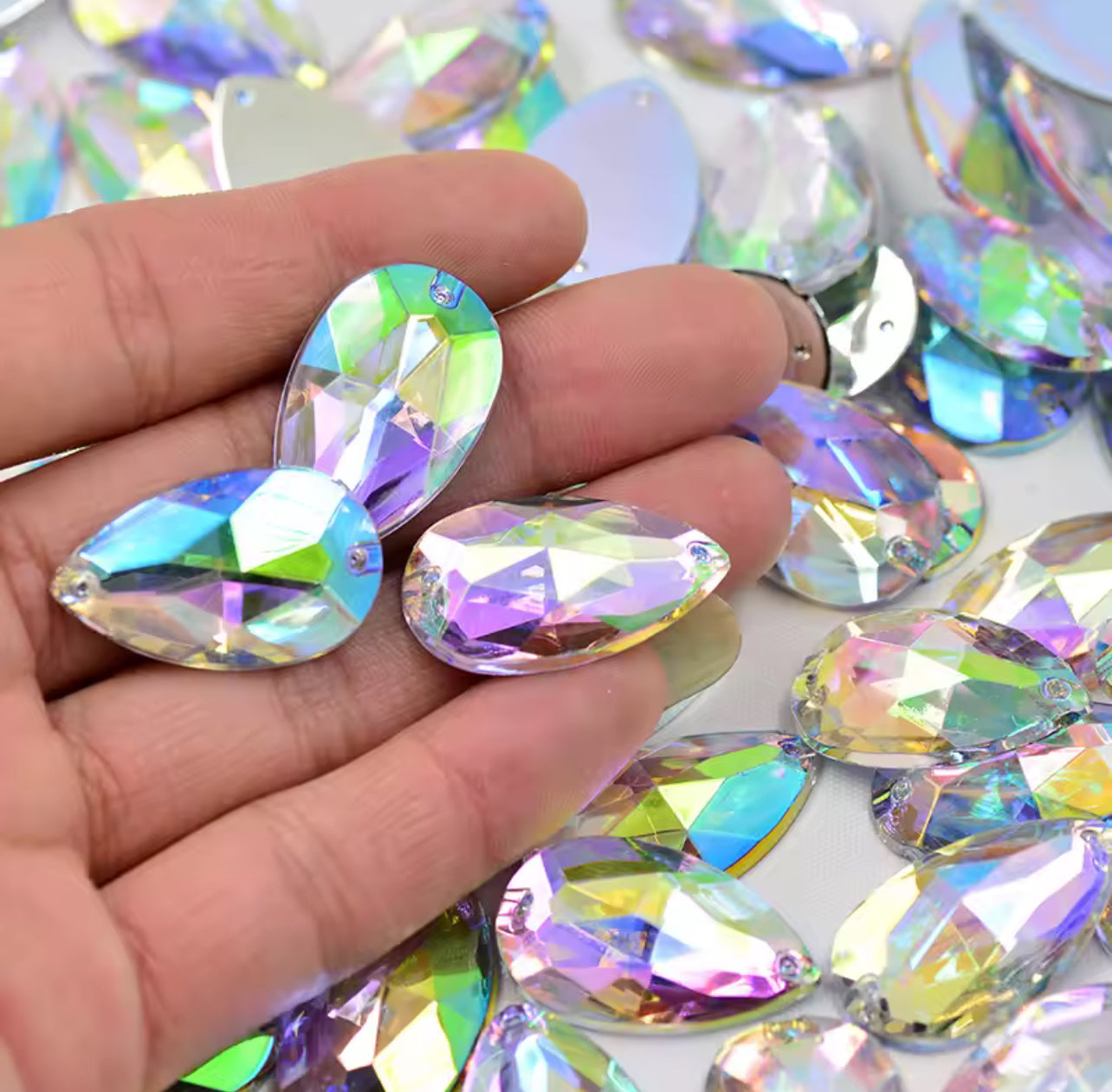 Enhance your clothing with our high-quality 17*28mm big size sewing flatback stones! Made from durable acrylic material, these rhinestones add a touch of glamour to any outfit. Sew on with precision and enjoy the dazzling sparkle of crystal AB drop stones. Perfect for DIY fashion projects and embellishments.